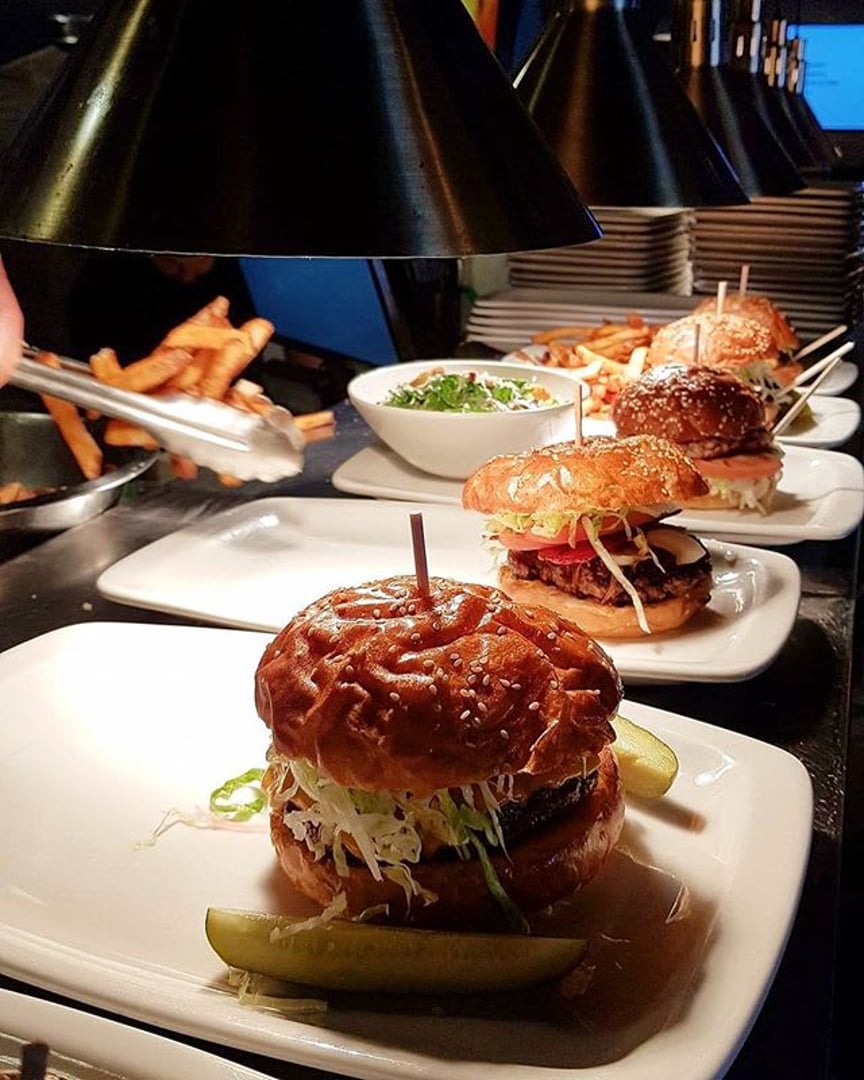 2 fresh ground beef patties, smoked bacon, cheese, sociable special sauce, lettuce, tomato, pickle, toasted sesame bun